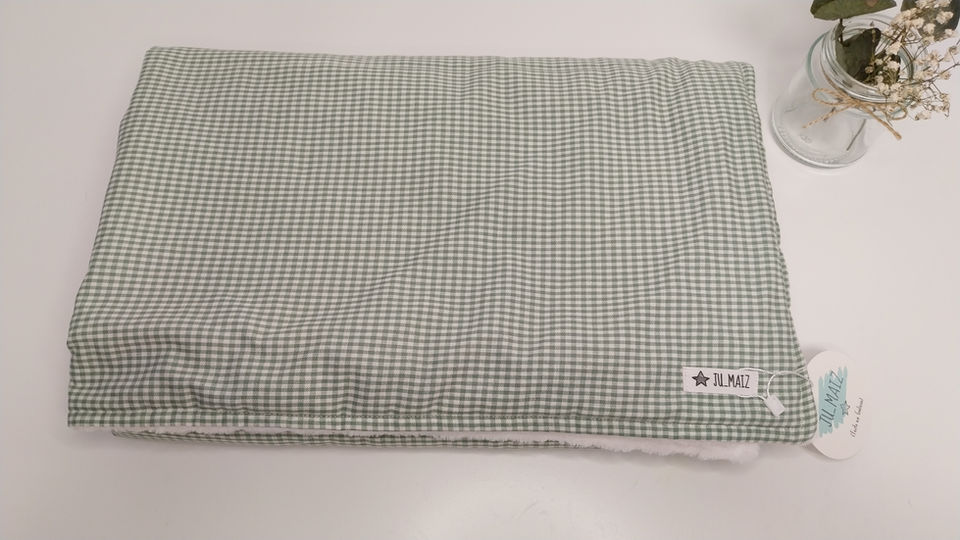 Manta de bebé coralina interior y exterior en color Vichy verde mint. El color puede variar ligeramente debido a las fotografías y dispositivo. El tamaño puede variar, ya que es totalmente hecho a mano.