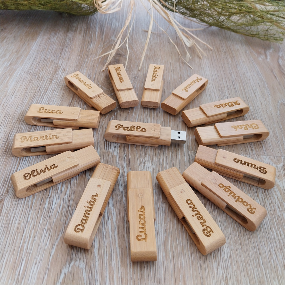 Sorprende a tus invitados con USB personalizados, con el nombre de cada invitado.